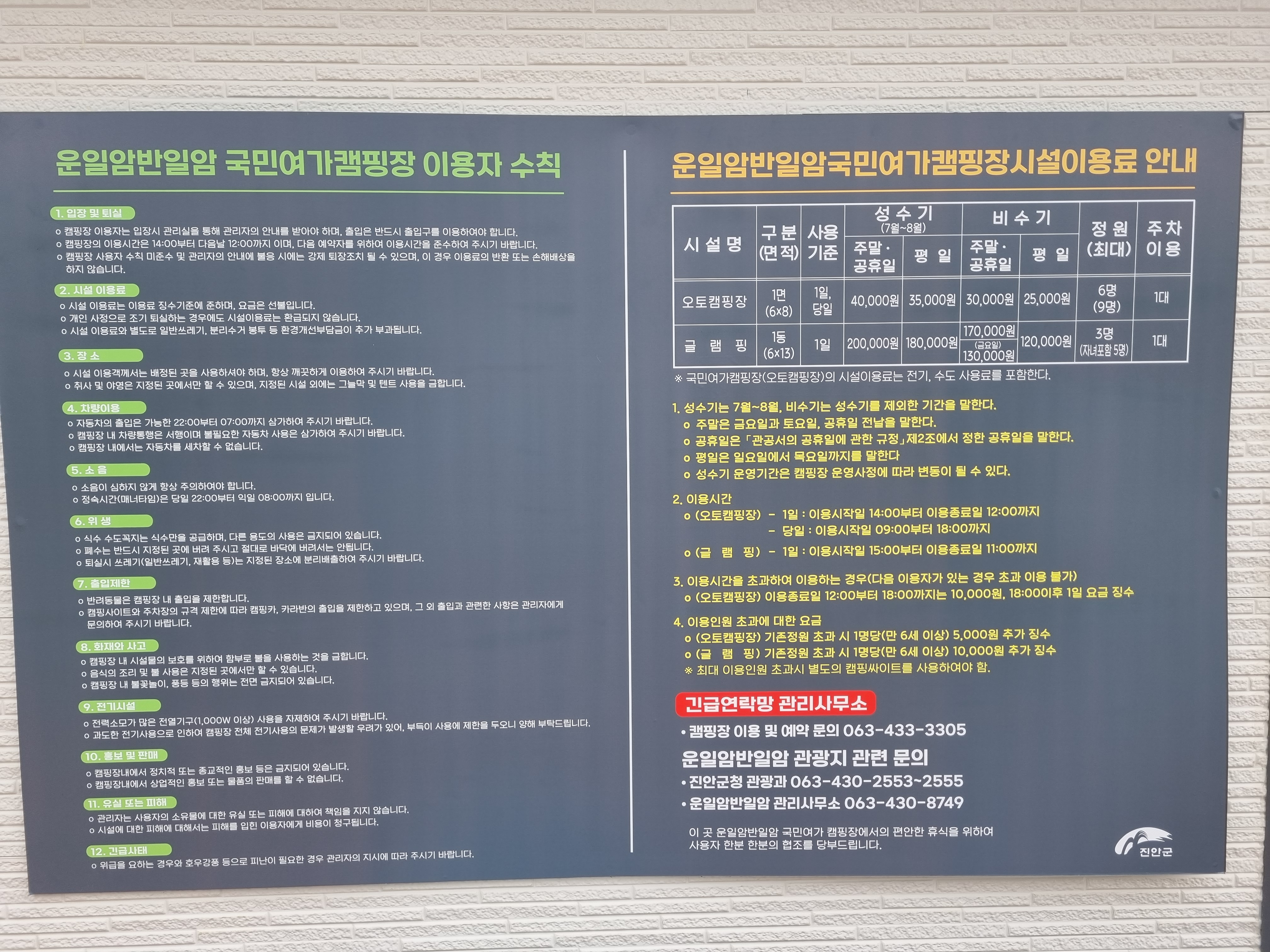 운일암 반일암 국민여가 캠핑장