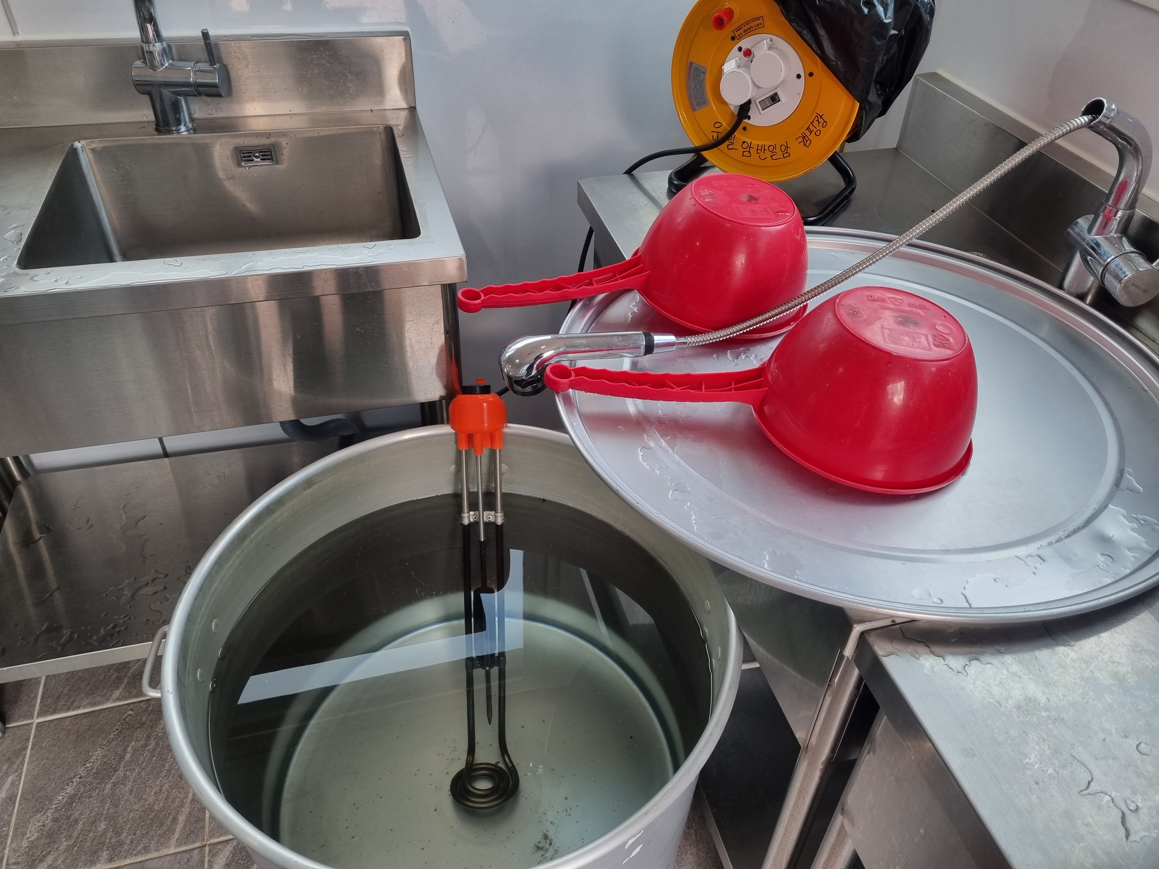 개수대는 혹시나 온수가 부족 할까봐 따로 온수를 준비해 주셨는데 온수 펑펑 잘나옵니다.